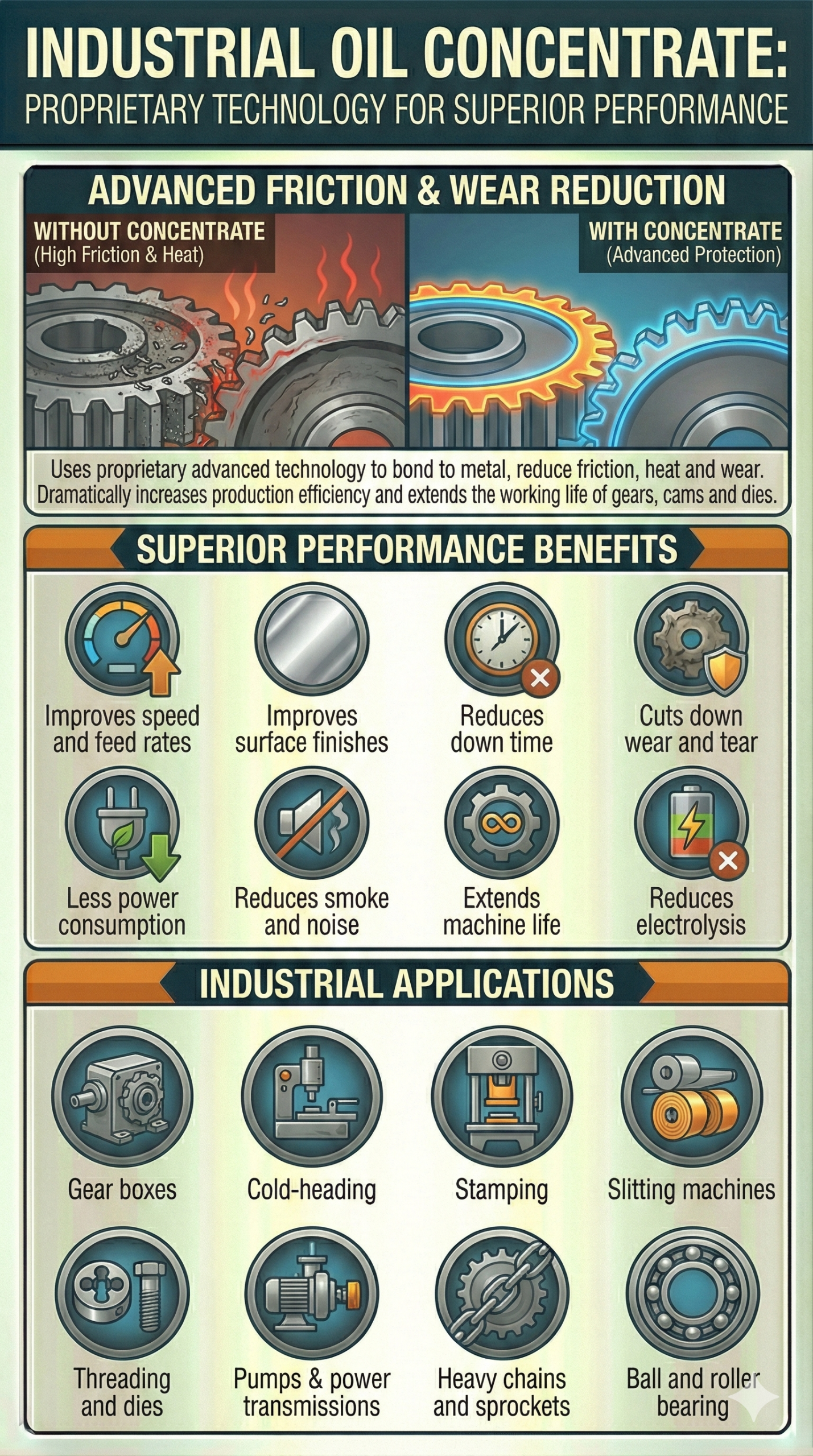 Using our proprietary advanced technology, this extreme pressure formulation reduces friction, heat and wear to dramatically increase production efficiently and extend the working life of gears, cams and dies. Adds superior performance to any oil application.